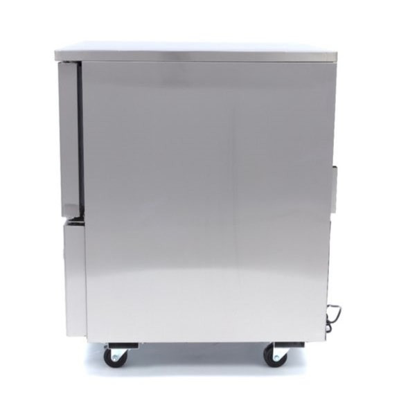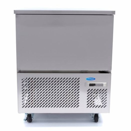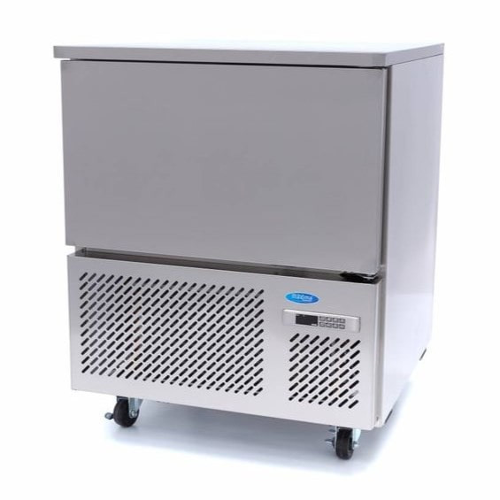 Ez a nagy teljesítményű sokkoló hűtő 90 percen belül 3 °C-ra hűti le ételeit, és körülbelül négy óra alatt -18 °C-ra tudja fagyasztani azokat. Intelligens digitális hőmérséklet-szabályozóval és maghőmérővel van felszerelve. A hűtőrendszer R290, CFC-mentes hűtőgázzal van töltve. A mozgatás megkönnyítése érdekében a sokkoló hűtő kerekekel van szerelve, és süllyesztett fogantyúval rendelkezik. Az ajtó önzáró és antibakteriális gumitömítéssel van ellátva. Belül lekerekített sarkok találhatók, hogy megakadályozzák a szennyeződés felhalmozódását, ezálltal könnyen tisztítható.
