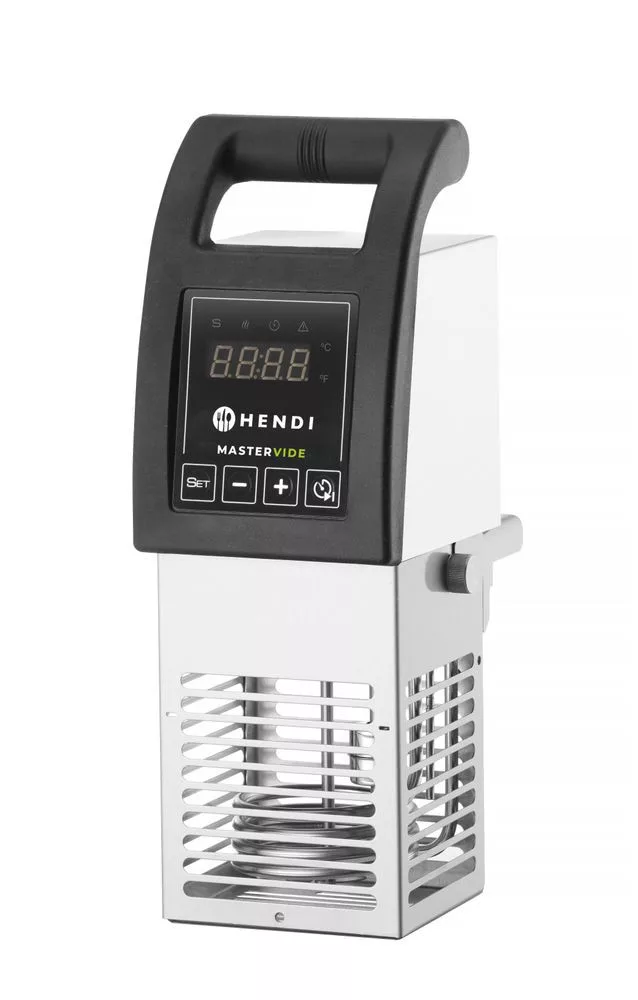 A HENDI Mastervide sous-vide főzőkészülék egy nagy teljesítményű eszköz, amely gyorsan és hatékonyan melegszik fel a működési hőmérsékletre. Az érzékelők 0,1 °C-os pontossággal tartják fenn a stabil hőmérsékletet, így biztosítva, hogy minden étel tökéletesen elkészüljön, maximális ízélményt nyújtva. A hőmérséklet 95 °C-ig, az időzítő pedig 99 óráig állítható be, így minden szükséges funkciót biztosít a sous-vide főzéshez.