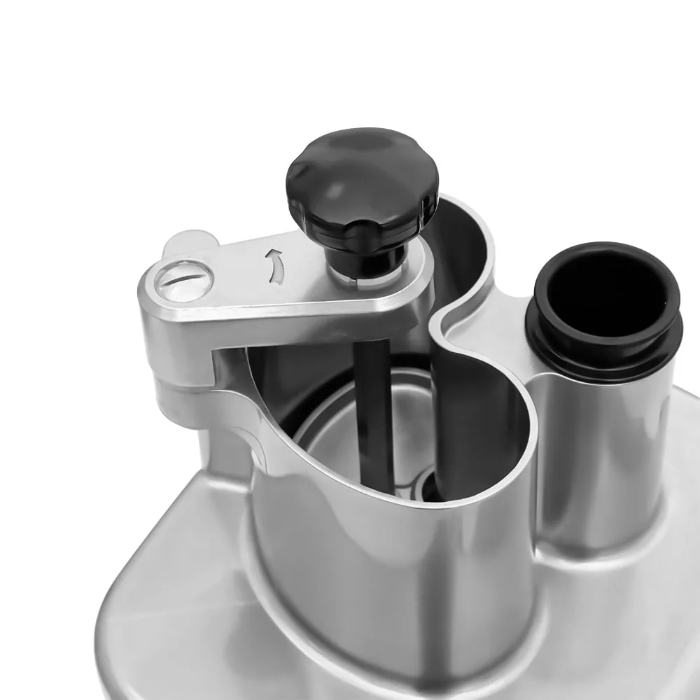 Gyárilag 5 tárcsával szerelve. Kis méretének köszönhetően egyszerűen tárolható, még a legkisebb konyhákban is. Strapabíró kialakítással. A Masterfood M-VC-50E zöldségszeletelő könnyen tisztítható és karbantartható, ideális választás bármely nagykonyhai létesítménybe.